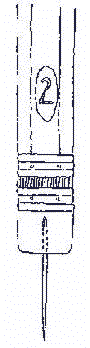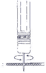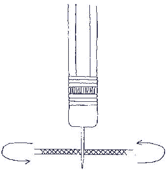 Besorgen sie sich ein Stück dünnes Blech, ich habe mit Konservendosenblech recht gute Erfahrungen gemacht. Legen sie das Blech auf eine Unterlage aus Holz oder Kunststoff und drücken sie die Nadel mit leichtem Druck und Drehbewegung in das Blech. |